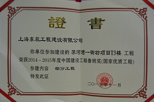 熱烈祝賀我公司(參建項目-蘇灣一街坊T3樓工程)榮獲2015年中國工程建設(shè)魯班獎作者: 來源: 日期:2015/11/30 13:08:18 人氣:3352